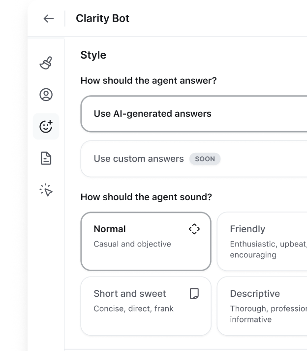 Customize their name, avatar, tone, and voice to match your brand.