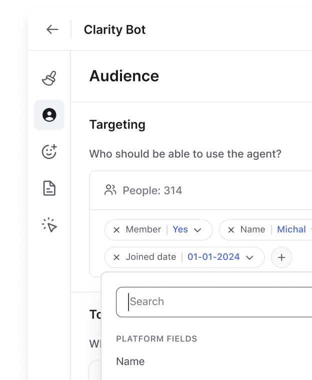 Yes, you can train your Agent with your community’s knowledge engine, adjust its tone, and monitor all AI interactions in the AI Inbox.