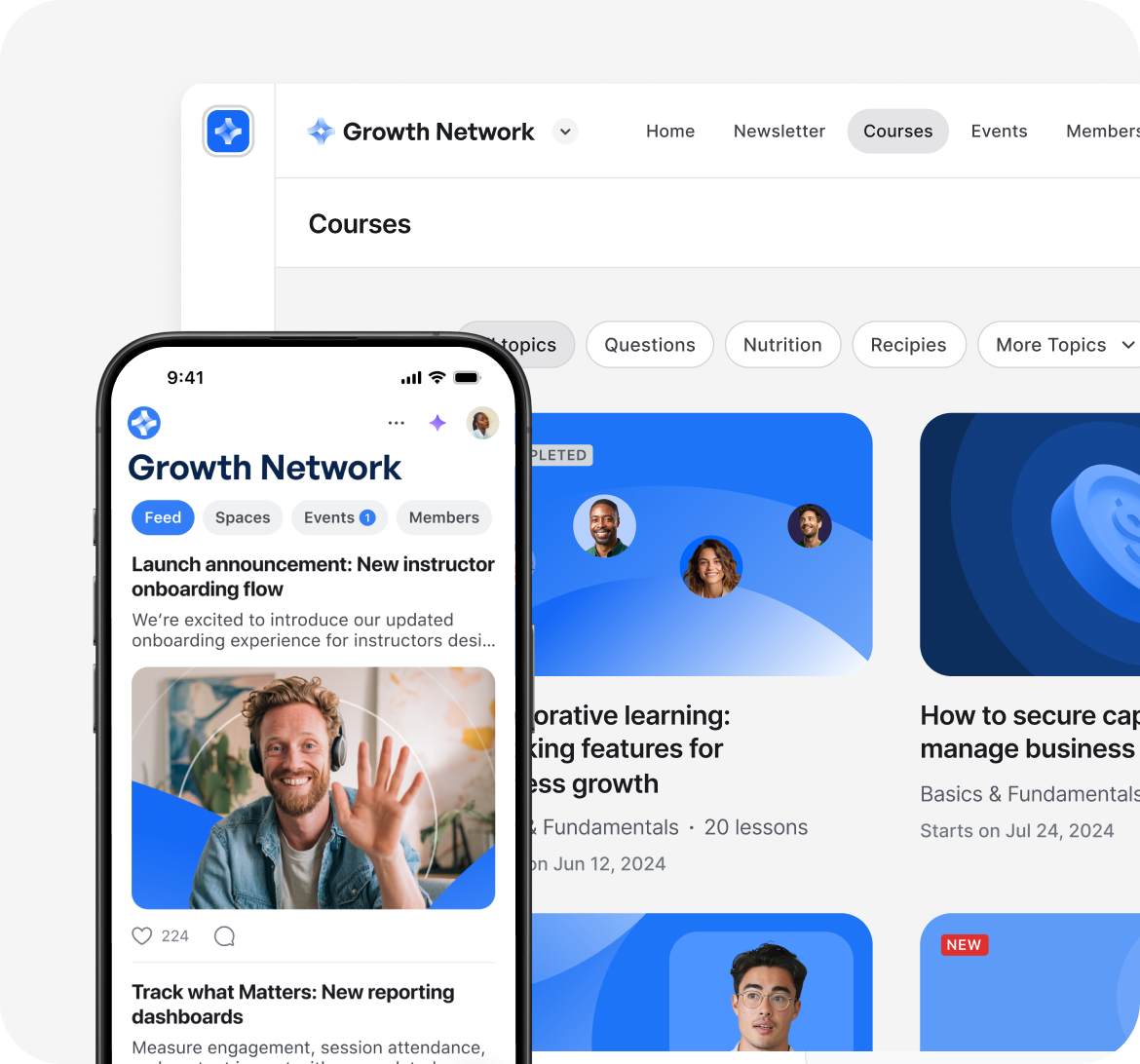 Because everything lives in one platform, you can track engagement, growth, and revenue in the same place — no stitching together dashboards from four different tools.