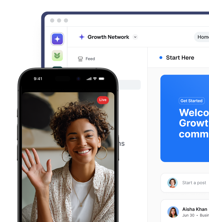 Community, courses, events, email, payments, website, and a branded app — all in one place.