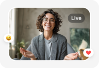 Native live rooms with chat, reactions, and replays