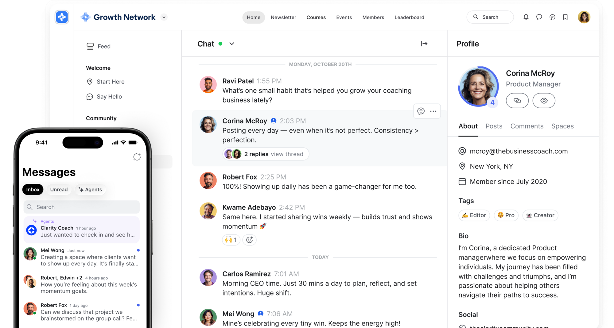Real community where members connect and talk to each other — not just a forum add-on