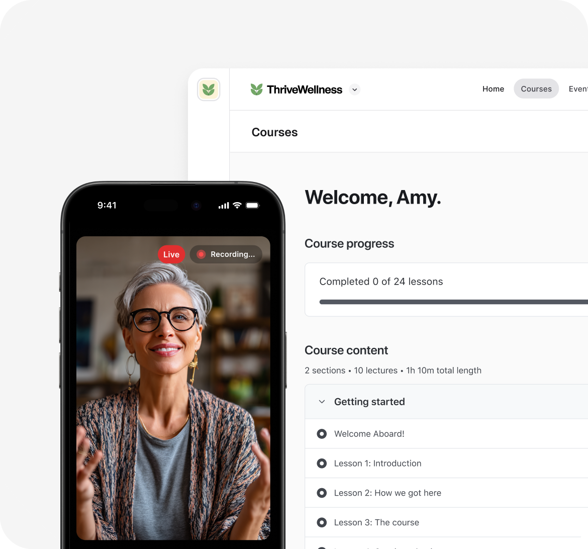 One connected space for courses, events, email, payments, and more