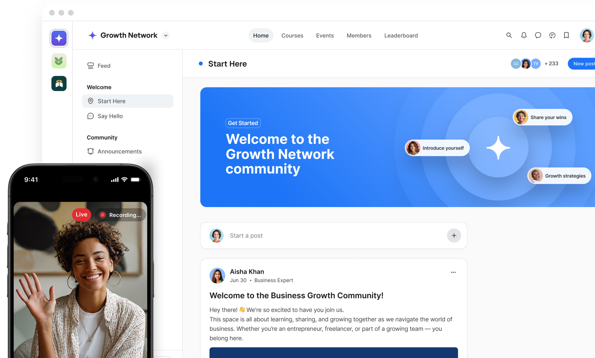 Thinkific has no native live streaming. All live events require pasting in an external video conferencing link (Zoom, Google Meet), and recordings must be obtained from the third-party tool and manually uploaded afterward. For accounts created after January 28, 2026, community live events aren't yet supported at all. If live sessions are a regular part of how you engage members, Circle eliminates an entire layer of manual work and tool costs.