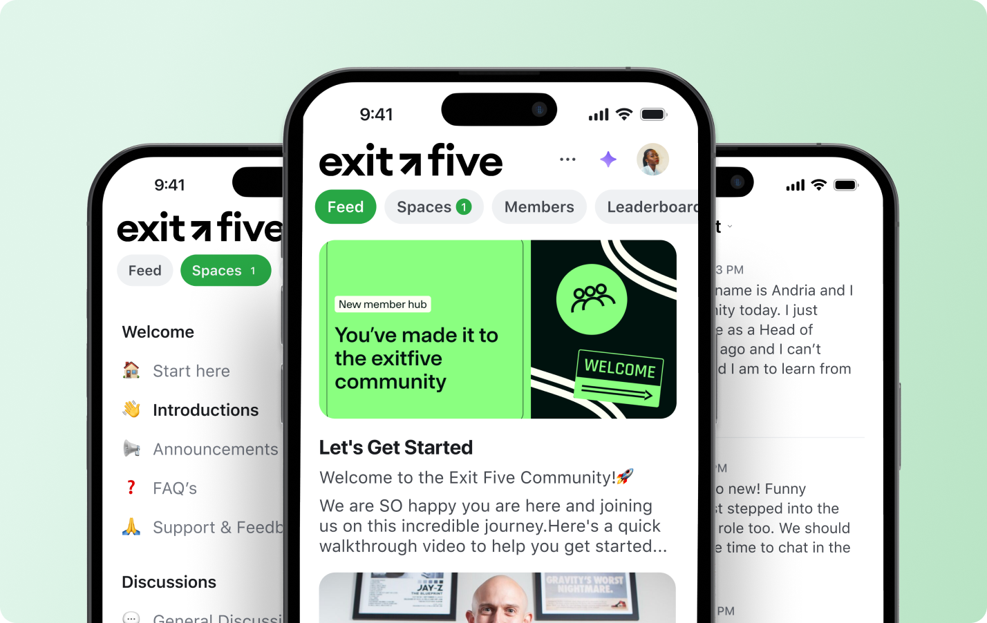 Once the community was live, Exit Five evolved quickly. The biggest unlock came with the launch of its branded mobile app, which shifted the community from a collection of tools to a fully formed product. Members could now access everything from their phones, receive push notifications, and engage in the moments between meetings and commutes. The branded app became a daily touchpoint. More than 25% of members now use the Exit Five iOS or Android app, driving deeper engagement and stronger long-term retention.