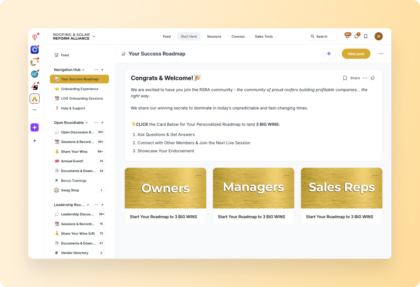 While RSRA did have a vetting process for new members in place, many early-stage or under-resourced companies came in looking for quick wins. Without a structured onboarding experience or dedicated community leadership, some struggled to fully engage—and eventually churned within 12–15 months. Adam realized he needed a platform—and a model—that built habits, deepened trust, and better set members up for success from day one.