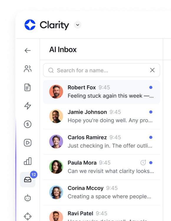 La Boîte de réception IA est un espace de travail partagé avec différents membres d’une équipe où les admins peuvent visualiser toutes les interactions des agents IA en temps réel et reprendre la main sur une conversation si besoin.