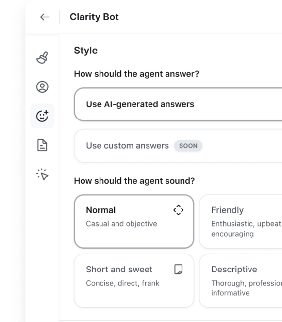 Personnalisez leur nom, leur avatar, leur ton et leur voix afin qu’ils reflètent l’image de votre marque.