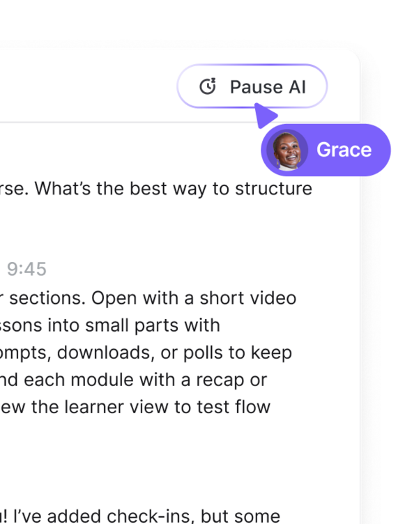 Une véritable équipe de support, pas juste des bots. Définissez le rôle de vos agents, formez-les et laissez-les guider et conseiller vos membres tout en gardant le contrôle.